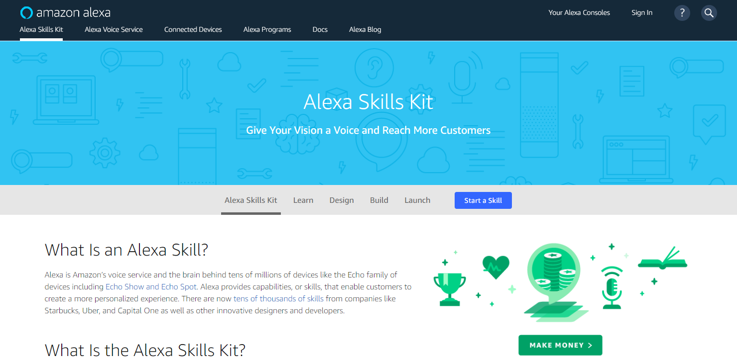스킬스에 등록된 앱들은 스마트폰의 앱처럼 인공지능 스피커 에코의 활용기능을 풍성하게 할 수 있습니다. 또한 아마존은 알렉사를 활용한 음성 인공지능 생태계 조성을 위해 유료화 앱 개방 뿐만 아니라, 화자인식 기능을 갖는 유어보이스와 H/W 디바이스에 알렉사를 연동할 수 있는 개발자 킷도 개방했습니다.