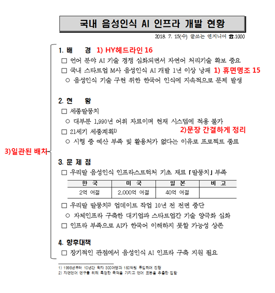 ‘준비’보다‘정리’를 익히고 ‘정리’에 능할 때‘준비’가 수월합니다. 저는 내용 준비를 위해 가장 좋은 신문 기사를 참고하여 작성할 것입니다. 신문 기사는 소설이나 에세이보다 Fact를 중심으로 한 글이라 보고서와 유사한 형태의 글입니다.
