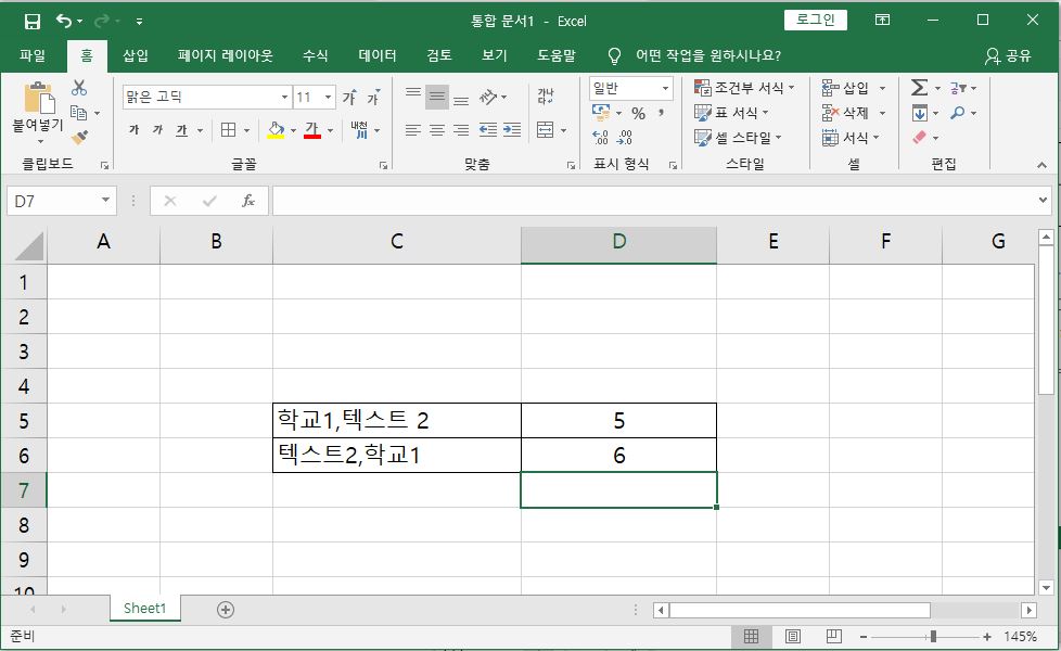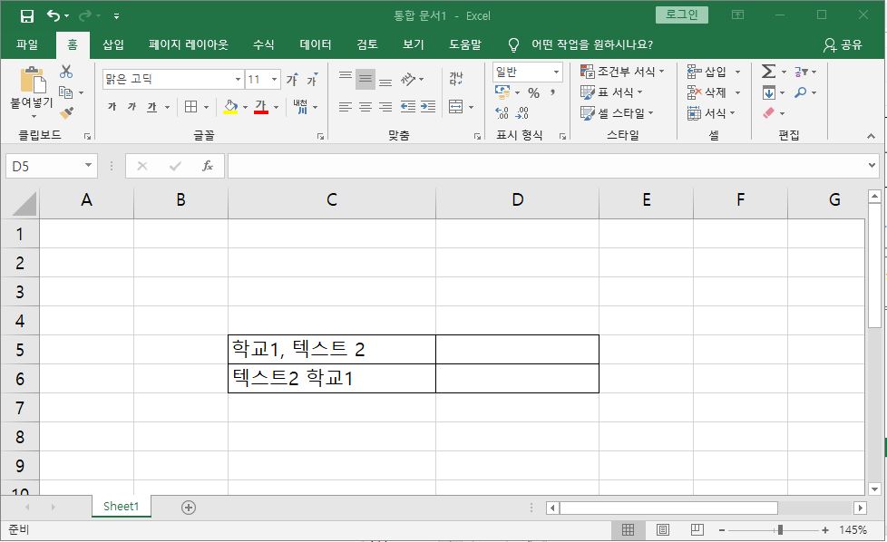 지금부터 간단한 예제를 통해 사용방법을 알아볼게요. 아래 사진을 보면 2개의 셀에 데이터가 있는 것을 볼 수 있어요