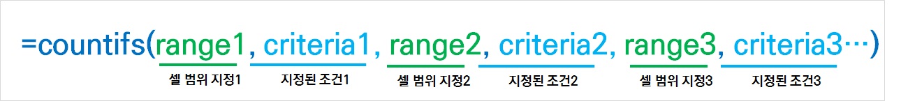 countifs 함수의 사용법은 countif 함수와 동일합니다. 대신 다른 범위와 조건을 추가할 수 있다는 차이가 있죠.