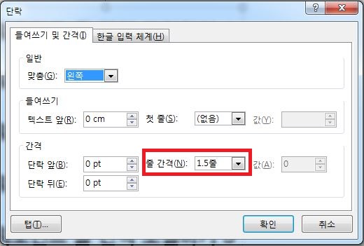 단락 창에서 간격의 줄 간격을 선택해주세요.